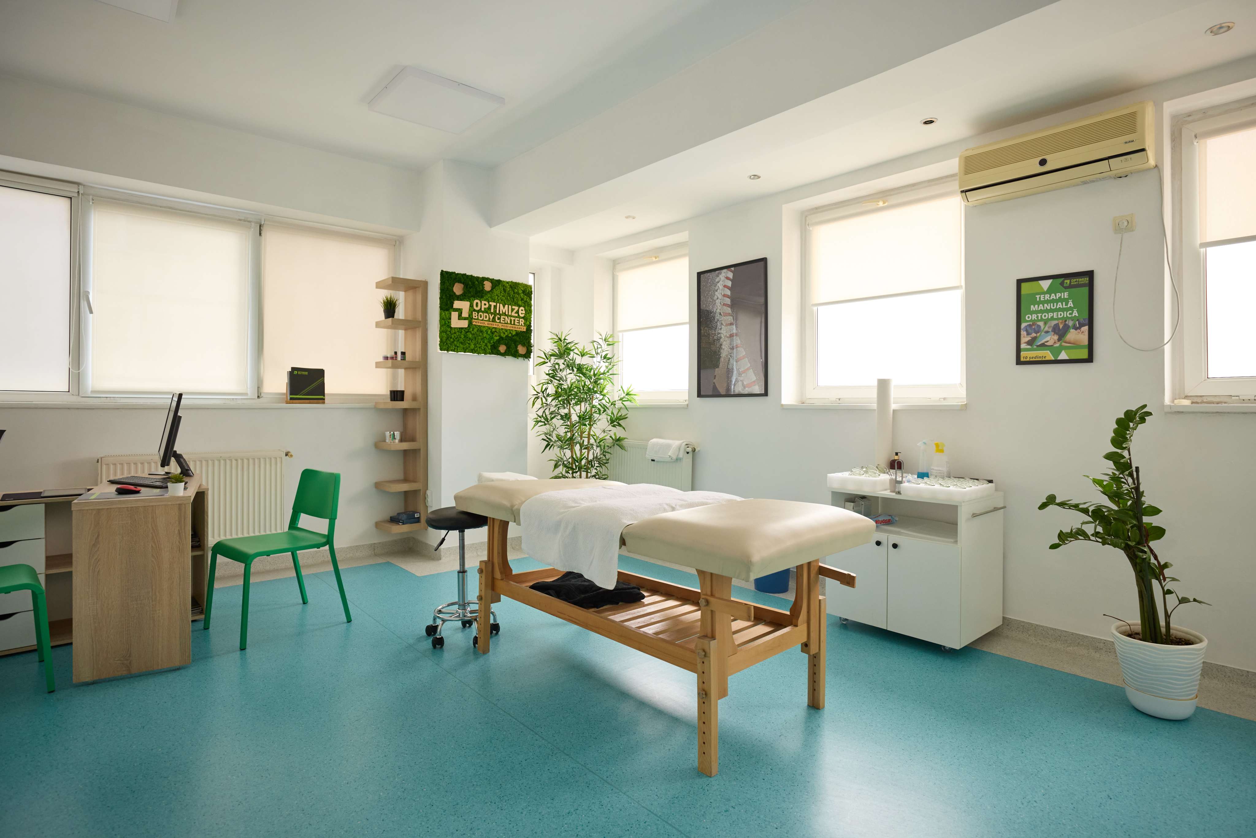 - Spațiu larg de 350 mp, dedicat recuperării medicale și ortopediei;